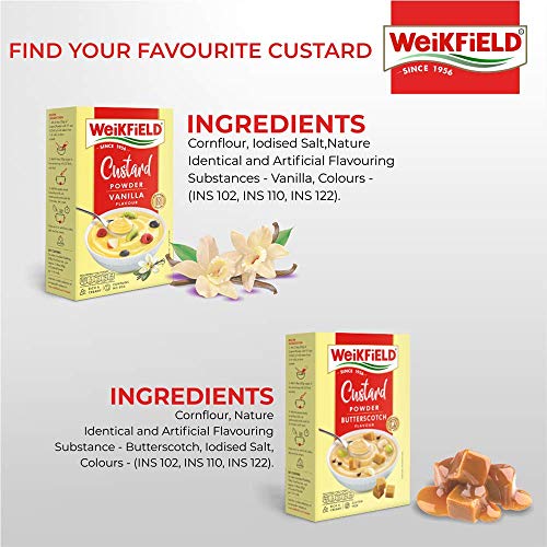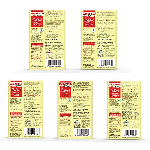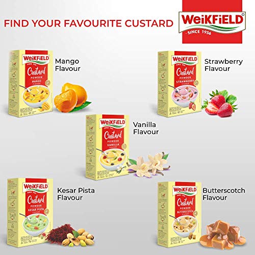 Weikfield Custard - Pack of 5 400g (Butterscotch 75g Strawberry 75g Mango 75g Kesar Pista 75g and Vanilla 100g)