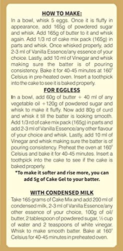 Wheafree Gluten Free Cake Mix (Pack of 2 x 500g each) | Lactose Free | No Added Sugar | Neutral Flavour| Diabetic Friendly | Hassle Free And Quick Baking | Best for Home BakingWheafree Cake Mix has made baking at home easier and hassle free for you. Now you can bake mouth-watering desserts and delight your whole family. With this pack you can bake 3 fresh soft and delicious cakes in an oven or even in a pressure cooker. Wheafree Cake Mix is a multigrain gluten free and eggless premix add any flavour to it and enjoy a rich textured fresh cake. Bring homemade touch to your next celebration/occasion by baking a cake with Wheafree Cake Mix. This pack contains 3 Servings. HOW TO MAKE: In a bowl whisk 5 eggs. Once it is fluffy in appearance add 165g of powdered sugar and whisk. Add 165g of butter to it and whisk again. Add 1/3 rd of cake mix pack (165g) in parts and whisk. Once whisked properly add 2-3 ml of Vanilla Essence/any essence of your choice. Lastly add 10 ml of Vinegar and whisk making sure the batter is of pouring consistency. Bake it for 40-45 minutes at 1600 Celsius in pre-heated oven. Insert a toothpick into the cake to see it is baked properly. FOR EGGLESS In a bowl add 60g of butter + 40 ml of any vegetable oil +120g of powdered sugar and whisk to make it fluffy. Now add 80g of curd and whisk it till the batter is looking smooth. Add 1/3 rd of cake mix pack (165g) in parts and add 2-3 ml of Vanilla Essence/any other flavour of your choice and whisk. Lastly add 10 ml of Vinegar and whisk making sure the batter is of pouring consistency. Preheat the oven at 1600 Celsius and bake it for 40-45 minutes. Insert a toothpick into the cake to see if the cake is baked properly. *To make it softer and rise more you can add 5g of Cake Gel to your batter.Wheafree Gluten Free Rice Maize Penne Pasta - 2 Packs (250g Each) | No Trans Fat | No Cholesterol | Easy to CookWheafree Gluten Free Rice Maize Penne Pasta - 2 Packs (250g each) With Wheafree Rice Maize Penne Pasta you can cook traditional pasta delicacies at home. Get creative in the kitchen with these easy-to-cook gluten free Rice Maize Penne Pasta. You can pair them well with a variety of sauces and vegetables. It is an ideal meal for those who are celiac gluten intolerant vegan and vegetarian families. Simply cook and savour the delicious goodness of Wheafree Rice Maize Penne Pasta How to make 1. Boil the water in a wide mounted container and take ½ litre of water for every 50 grams of dry pasta. 2. To the boiling water add dry pasta ¼ teaspoon salt and ½ tablespoon of oil. Stir the pasta periodically and let it cook for 8- 10 minutes. Take a piece to ensure it has no dry center. 3. Drain the water & rinse in cold water. Smear the drained pasta with 1/2 teaspoon of oil. 4. In a separate pan heat some oil and sauté your choice of vegetables and prepare pasta sauce. 5. Then add the already boiled pasta and stir with light hands. Cooks it for a few minutes only.