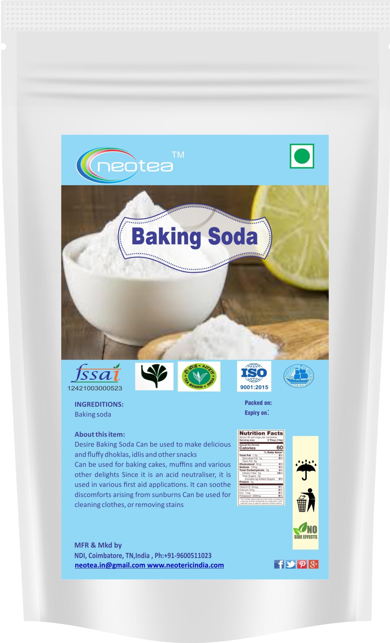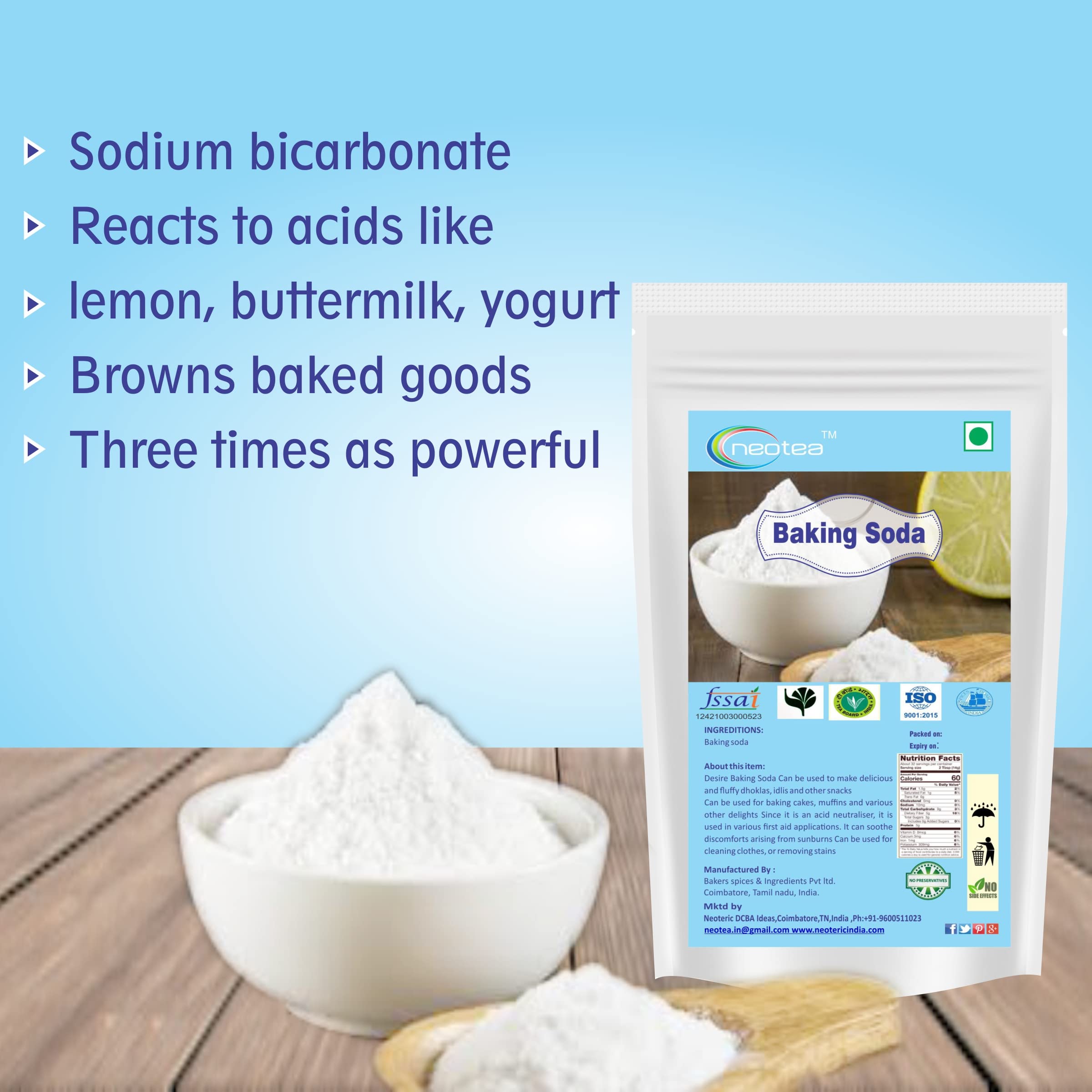 Neotea Pure Baking Soda - 300g is a versatile multi-purpose product that goes beyond the kitchen. This natural safe and effective baking soda is perfect for a wide range of uses including baking cooking cleaning and personal care. Neutralize Body Odor: Simply apply a small amount of Neotea Baking Soda to your underarms to neutralize body odor naturally. It works effectively as a deodorant without the use of harsh chemicals keeping you fresh all day long. Relieve Heartburn and Indigestion: Neotea Pure Baking Soda is an excellent natural antacid. When consumed in the right amounts it helps relieve heartburn sour stomach and acid indigestion. Always refer to the package instructions for safe use. Soothing for Insect Bites: For insect bites create a soothing paste by mixing Neotea Baking Soda with water and applying it to the affected skin. This simple remedy can help calm irritation and reduce itching. Whether you're using it for culinary creations as a natural remedy or as a cleaning agent Neotea Pure Baking Soda offers a safe eco-friendly alternative to many common products. With its multi-purpose use and 300g pack size it's the perfect household essential for all your needs.