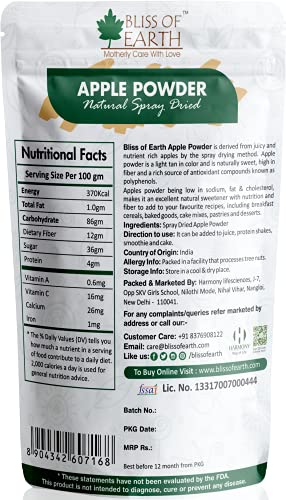 Bliss of Earth 200 GM of Apple Powder Natural Spray Dried Great for Smoothie | Apple juice | bake apple pie