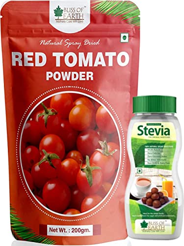 Bliss of Earth Tomato Powder is made using spray dried method from red tomatoes also known as "tamatar" in Hindi. It is the perfect supplement to spruce up any dish in need of the classic tomato flavor Tomato powder boasts a rich source of vitamins A and c which not only defend the immune system but also protect the health of the eyes and skin its's also high in minerals like folate potassium magnesium and iron which support a wide range of metabolic processes in the bodyBliss of Earth Stevia contains 99.8% REB-A and is valued most for the sweet taste. This makes it capable of replacing sugar in a diet without compromising on the taste. Importantly it also has ZERO calorific count pushing it in the âno-calorieâ food zone. It is used as a healthful alternative to added sugar in many meals and beverages. "NO PRESERVATIVE" are added to make it the most natural Stevia Powder available today.