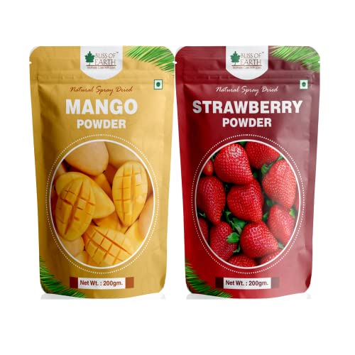 Bliss of Earth 200gm Mango Powder + 200gm Strawberry Powder Natural Spray Dried Taste and Healthy Combo