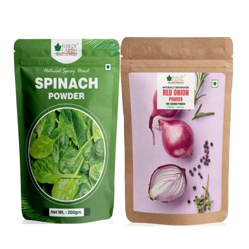 Bliss of Earth 200gm Spinach Powder + 200gm Natural Red Onion Powder, Dehydrated, Good For Cooking & Hair Growth