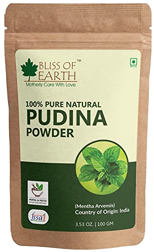 Bliss of Earth spinach powder is derived from the nutrient rich leaves of spinach by spray drying method. It is known to be an excellent source of iron protein vitamin ACK calcium and other nutrients. commonly known as "PALAK" It is good for the immune system body detox skin health and heart health.Cooling calming and energising mint aka Pudina is the cornerstone of most Desi beauty regimens all thanks to the instant burst of coolness it exudes to our skin in sweltering summers. Whether dashed generously on cuisines or applied topically discounting the beauty benefits of this humble beauty ingredient is a sin mark those words in capital.