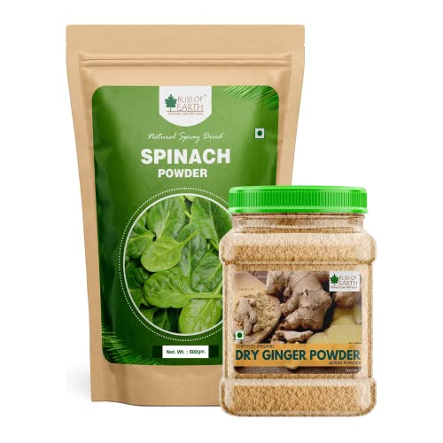 Bliss of Earth spinach powder is derived from the nutrient rich leaves of spinach by spray drying method. It is known to be an excellent source of iron protein vitamin ACK calcium and other nutrients. commonly known as "PALAK" It is good for the immune system body detox skin health and heart health. Bliss of Earth Ginger Powder is a organic versatile herb known for centuries for its health benefits. The ginger used is completely dehydrated at low temperatures so that it retains all the essential nutrients and the amazing flavor it offers. 115 chemical compounds are known to be found in the ginger root making it a super antioxidant and anti-inflammatory agent. Ginger has been proven to helps in boosting immunity digestive support and cough & cold.