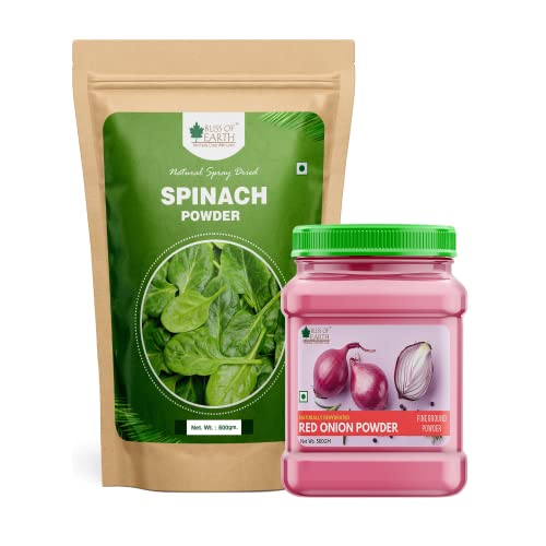 Bliss of Earth 500gm Spinach Powder + 500Gm Red Onion Powder Natural Spray Dried Good for cooking and health