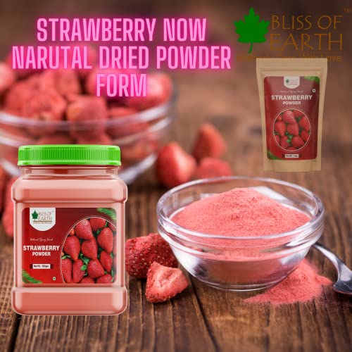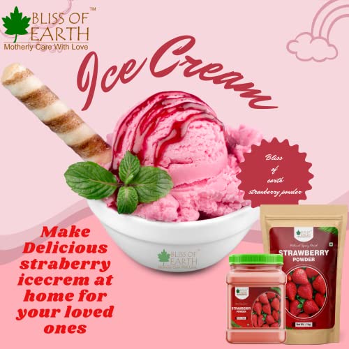 Bliss of Earth 500gm Strawberry Powder For Milk, Milkshake, Cake, Kids Loving Natural Spray Dried
