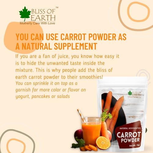 Bliss of Earth Carrot Powder All Natural Dehydrated, Pure, Freshly Ground, and Delicious Great for Juice, Cooking, Soup, Baking & Skin 3x200gm