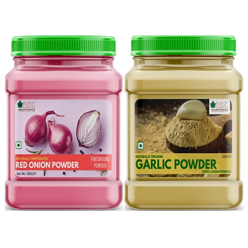Bliss Of Earth Combo Of Natural Red Onion Powder For Cooking & Hair Growth Organic Garlic Powder Dried For Cooking (Pack Of 2x500gm)
