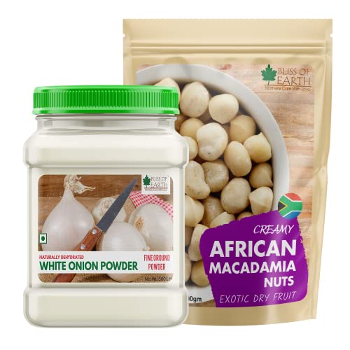 Bliss Of Earth Combo Of Natural White Onion Powder For Cooking & Hair Growth And Healthy Macadamia Nuts For Bone And Gut Health (Pack Of 2x500gm)