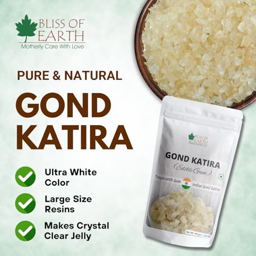 Bliss of Earth gond katira is a natural gum obtained from the dried sap of several species of Middle Eastern legumes of the genus astragalus .gond katira is a viscous odorless tasteless water soluble mixture of polysaccharides obtained from sab that is drained from the root of the plant and fried the gum seeps from the plant in twisted ribbons or flakes that can be powdered it absorbs water to become a gel which can be stirred into a paste .