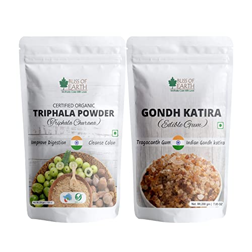 Bliss of Earth Organic Triphala Powder Churan & Organic Gond Katira Tragacanth Gum 200 gm Pack of 2
