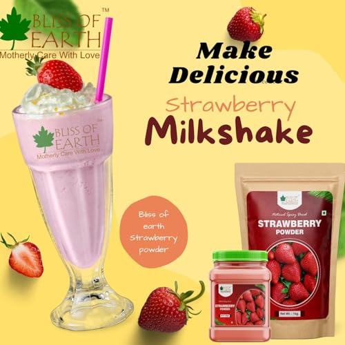 Bliss of Earth Strawberry Powder 1kg For Milk, Milkshake, Cake, Kids Loving Natural Spray Dried