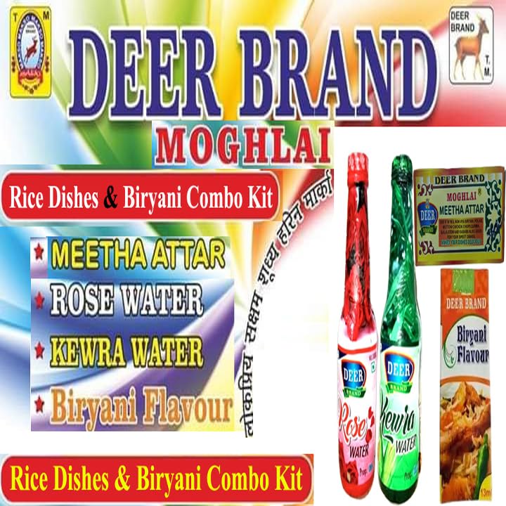 DEER BRAND MOGHLAI Rose Water Food Grade specially use in Chicken/Veg Biryani Rice Dishes & Mughlai dishes Pulao Fried Rice Milkshakes ice cream Rasmalai Sharbat Rasgulla & Other Recipes Sweet Dishes Desserts