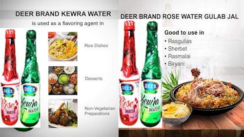 DEER BRAND MOGHLAI Kewra Kewda Keora Water Food Grade specially use in Chicken/Veg Biryani Rice Dishes & Mughlai dishes Pulao Fried Rice Milkshakes ice cream Rasmalai Sharbat Rasgulla & Other Recipes Sweet Dishes Desserts