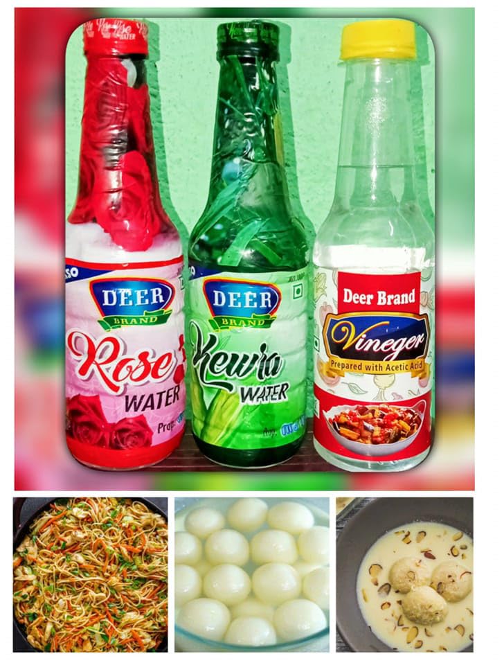 DEER BRAND Rice Dishes & Mughlai Dishes Water use in Biryani PulaoFried Rice Milkshakesice-creamRasmalaiSharbatRasgullaSweet Dishes-Desserts (ROSE+KEWRA+VINEGAR 900 ML)