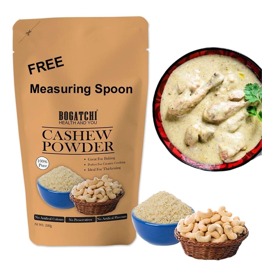BOGATCHI Cashew Nut Flour - Cashew Powder for Making - White Gravy Curry Paneer Sabzi Malai Kofta Dum Aloo White Chicken Kaju Shake Kaju Katli Ice Cream 200g Free Measuring Spoon