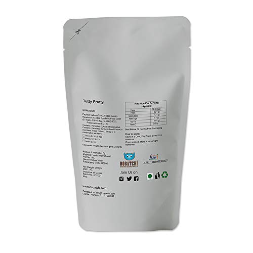 BOGATCHI Tutti Frutti is the Premium Quality Product. Ready to use for literally putting cherry on the top of your Muffin Cake Ice-cream and more. Delicious and can be used as sprinkles for decoration of cakes Ice-Creams Muffins Cookies and more.