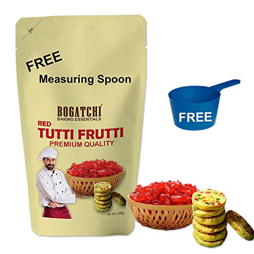 BOGATCHI Red Tutty fruitty Dry Fruit for Cakes Shakes and Ice Creams Decorations Red Tutti Frutti Delicious and Tasty 200g with Free Measuring Spoon