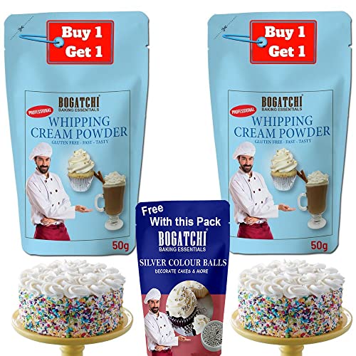 BOGATCHI Whipping cream for cake Whipping Cream Powder Whipped Cream Rich Whipping cream Premium Whipped cream powder- FREE One Extra Whipping Cream Powder(50g)+ Silver Balls (20g)