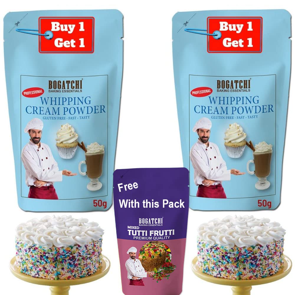 BOGATCHI Whipping cream for cake Whipping Cream Powder Whipped Cream Rich Whipping cream Premium Whipped cream powder- FREE One Extra Whipping Cream Powder(50g)+ Tutty Fruity (50g)