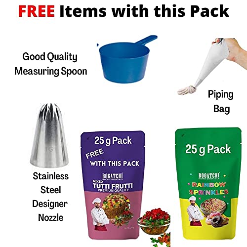 BOGATCHI Whipping Cream Powder Gluten Free | Tasty | Non-GMO 180g Free Tutty Fruity and Rainbow Sprinkles Measuring Spoon�