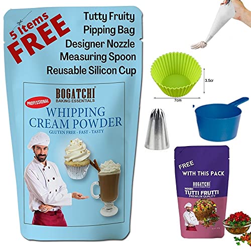 BOGATCHI Whipping Cream Powder Non - GMO |Tasty | Gluten Free Whipping Cream for Cakes Cup Cakes Coffee Muffins Tarts 180g Free Measuring Spoon