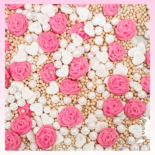 Product Description Add a touch of magic and sparkle to your baked creations with our assorted Pretty Sprinkles. This exclusive mix features an enchanting collection of pastel-colored of shapes colors and textures including stars hearts pearls flowers roses jimmies & sparkling sugar. Each jar contains a vibrant assortment that will make your cakes cupcakes cookies and other desserts look irresistibly festive and fun. Each jar is filled with a harmonious blend of soft pinks gentle blues delicate purples sparkling whites and shimmery golds making your baked goods a visual delight.