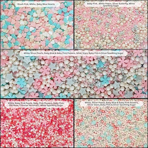 Confect Aqua Blue Pink & Silver Heart Sprinkle | White & Pink Pearl Frozen Sprinkles | Sprinkles for Baking & Cake Decorative | Birthday & Celebration Edible Mix Pack of 5-100gms