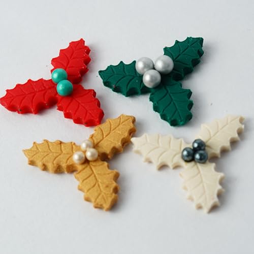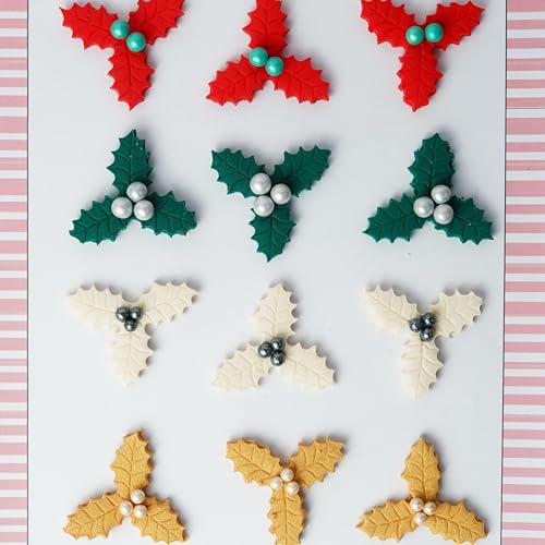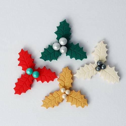 Confect Assorted Christmas Holly mistletoe Mix - green white gold red Pack of 12| Edible Christmas cake topper | Xmas Holiday Toppings for Cupcakes Cookies and Desserts CC 33-60 gms