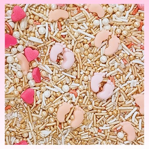 • Designed with baby girls in mind these sprinkles are ideal for creating a festive and celebratory atmosphere at your baby shower. They make a lovely addition to themed desserts and can serve as a charming touch that ties together your event's decor.