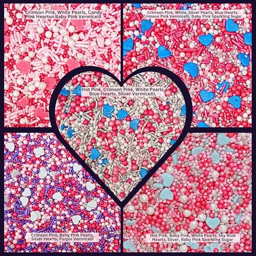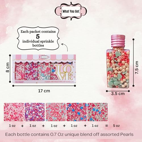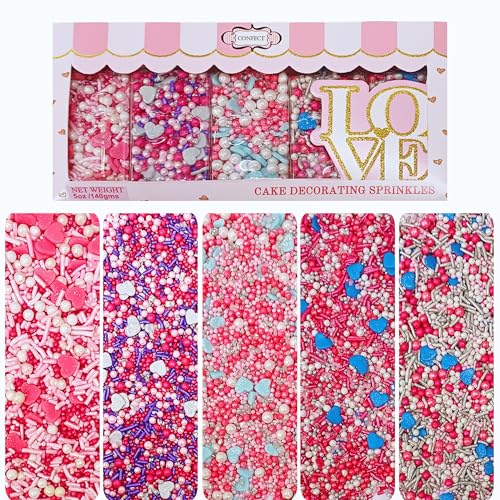 Confect Blue Pink & White Pearl Sprinkles | Heart Sprinkles | Baby Shower Sprinkles | Sprinkles for Baking & Cake Decorative | Silver Sparkling Sugar Sprinkles | Frozen Edible sprinkles Mix Pack of 5 - 100 gms