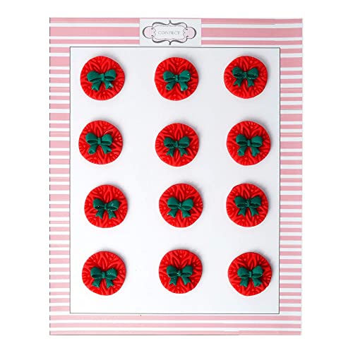 HomeGroceryCookingBaking SuppliesFrosting, Icing & DecorationsConfect Christmas Red & Green embossed with bow Medallions | Edible Christmas cake topper | Cake decoration supplies | Xmas Holiday Toppings for Cupcakes Cookies and Desserts CC 2-60 gms