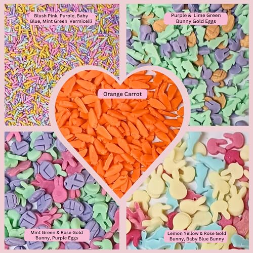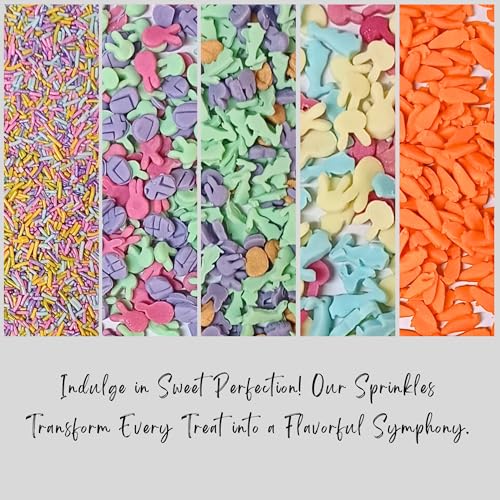 Confect Easter Sprinkles Edible | Assorted pack of 5 Pink Yellow Red Silver and Green Vermicelli and Easter Bunny I Cookies Desserts & cupcake Decorating | Edible Sprinkles Mix-3.5 Oz