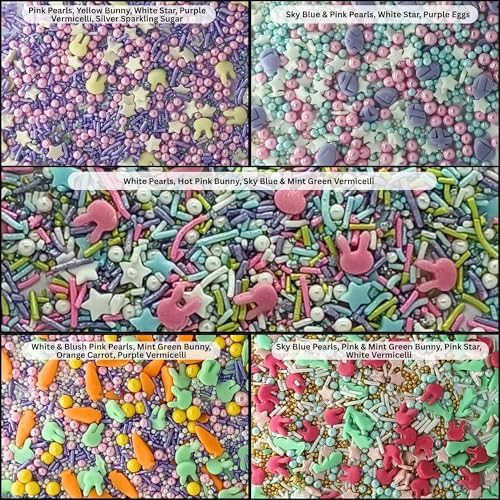 Confect Easter Sprinkles Edible | Assorted pack of 5 Silver Pink and Yellow Pearls & Stars I Cookies Desserts & cupcake Decorating | Edible Sprinkles Mix for Baking & Cake Decorative -3.5 Oz