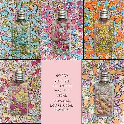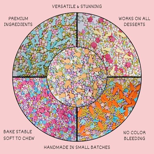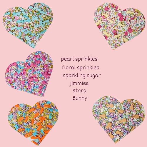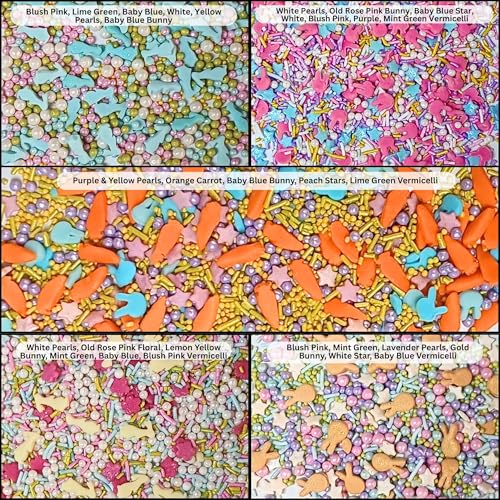 Confect Easter Sprinkles Edible | Assorted pack of 5 White Sky Blue Pink Yellow Pearls Easter Bunny & Vermicelli I Cookies Desserts & cupcake Decorating | Edible Sprinkles Mix -3.5 Oz