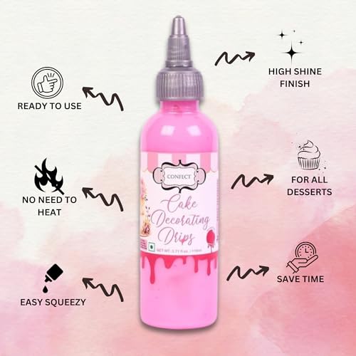 Confect Edible Drips | Cake Drip for Cake Decorating | Drizzle for Doughnuts Cupcakes & Desserts | Ready-to-Use (3.71 Oz) (Hot Hot Pink)