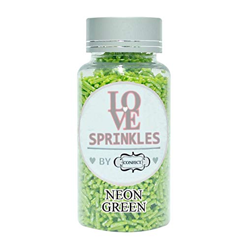 Confect Edible Neon Green Vermicelli Sprinkles 90 GMS for Cake Cupcake Decor