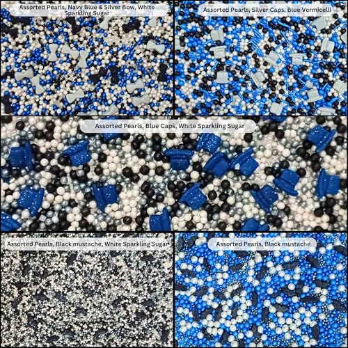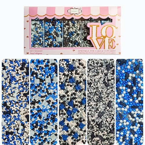 Confect Edible Sprinkles | Black Blue & White Sprinkle Mix | Celebration Fancy Sprinkles | Assorted Pack of 5 Edible Dragees- 3.5oz / 100 gms