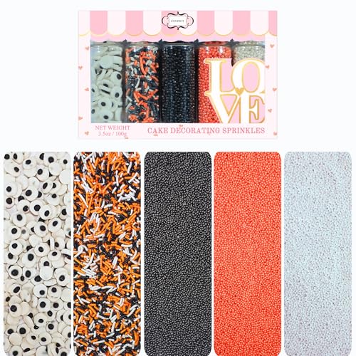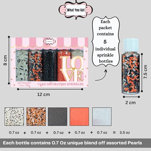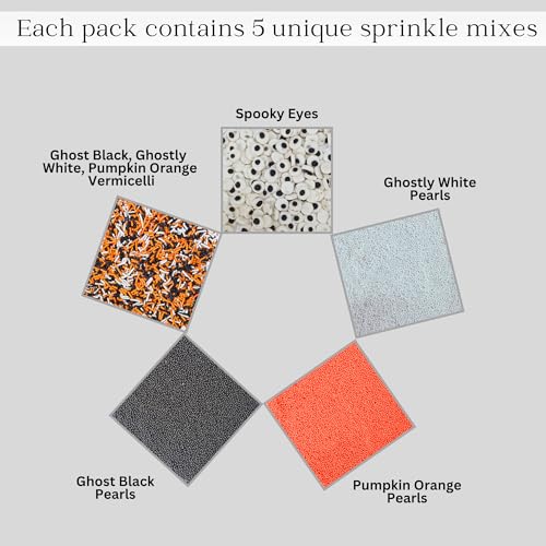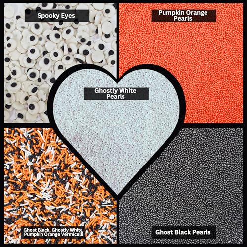 Host a hauntingly fabulous Halloween with Confect Ghostly Gala Sprinkles! This spine-tingling mix features a chilling blend of bloody red ghostly white pumpkin orange midnight purple ghost black and ghastly green jimmies. Perfect for adding a splash of festive fright to your cakes cupcakes cookies and more these sprinkles will make your Halloween desserts the lifeor afterlifeof the party. Each 3.5oz package is packed with enough colorful jimmies to decorate multiple treats ensuring that your Halloween celebration is a truly ghostly gala. Whether you're planning a spooky gathering or just want to add some eerie elegance to your baking Confect Ghostly Gala Sprinkles are the perfect finishing touch to make every bite a little more boo-tiful !