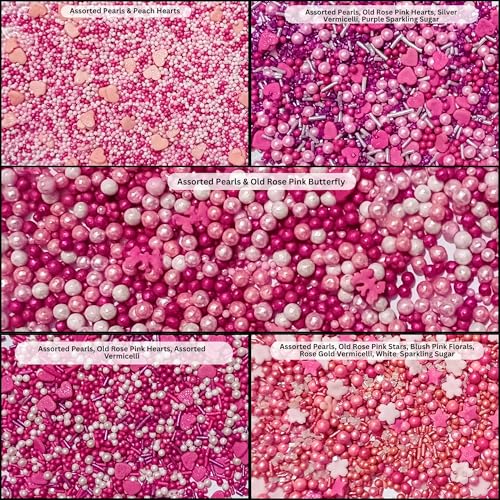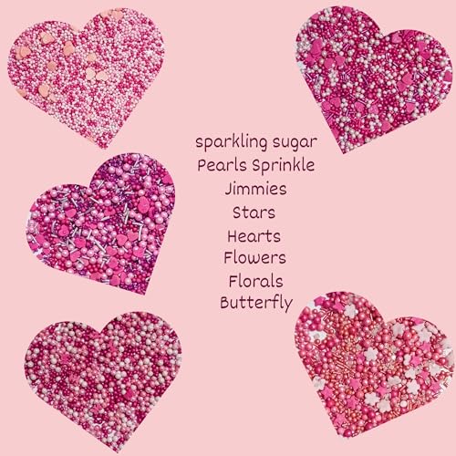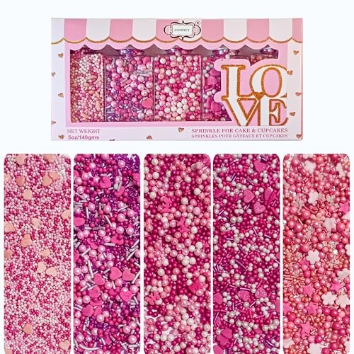 Confect Pretty in Pink and White Pearls Sprinkles | Mix Hearts & Stars Spinkles | Sprinkles for Baking & Cake Decorative | Cookie sprinkles | Birthday & Celebration Sprinkles | Edible sprinkles Mix Pack of 5 - 140gms
