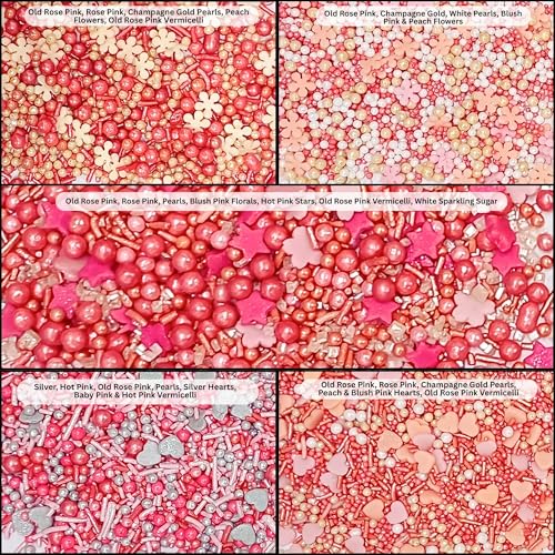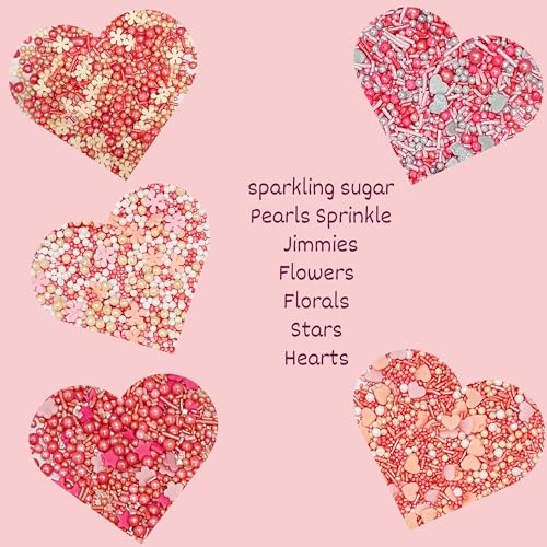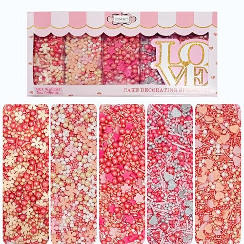 Confect Pretty in Pink Gold and white Flower & Pearl Sprinkles | Heart & Star Sprinkles for Baking & Cake Decorative | Birthday & Celebration Edible sprinkles Mix Pack of 5-140 gms