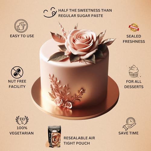 Confect Rose Gold Sugar Paste | Edible Sugar Paste | Fondant for Cake Decoration | Edible Fondant Chefs Choice for Cake Decorating - 250 Gms