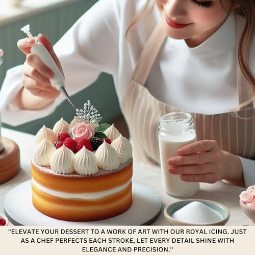 Confect Ready-to-Use Royal Icing is a convenient and versatile decorating medium designed for vegetarians. It is pre-mixed and ready for immediate use eliminating the need for preparation and simplifying the decorating process. Made with high-quality ingredients including powdered sugar and a vegetarian-friendly binding agent Our royal icing provides a smooth glossy finish that dries to a hard durable surface. Ideal for both amateur and professional bakers it delivers consistent results and can be easily colored with gel food coloring to match any design.