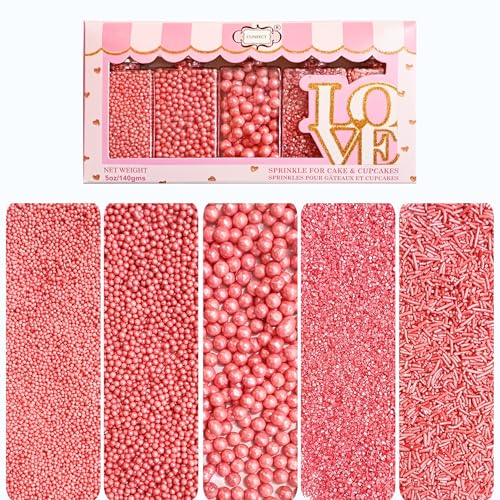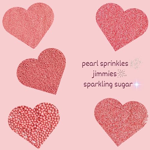 Confect Valentines Sprinkles | Sprinkle for Cakes & Cupcakes Decoration | Pearl & Valentine's Rose Pink Sprinkles | Edible Mix Dragees Jimmies & Sparkling Sugar - 140GMS