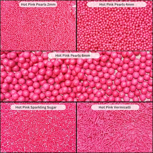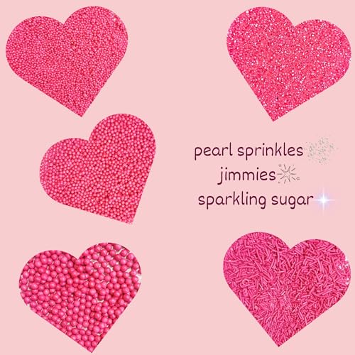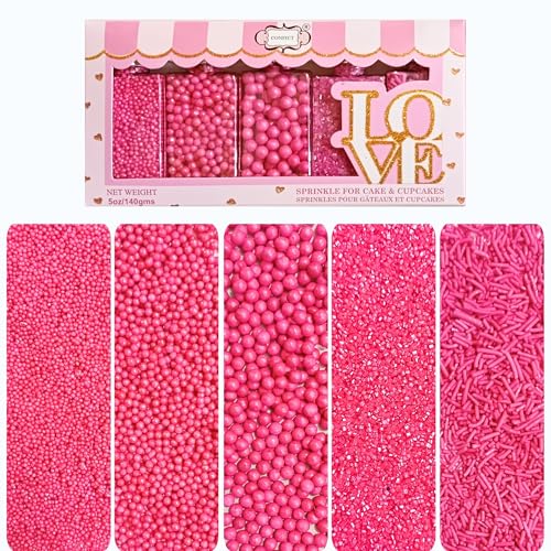 Confect Valentines Sprinkles | Sprinkle for Cakes & Cupcakes Decoration | Pearl Hot Pink Sprinkles | Edible Mix Dragees Jimmies & Sparkling Sugar - 140GMS