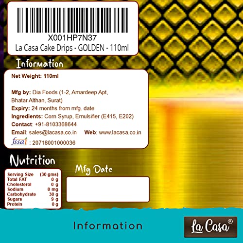 La Casa Metallic Cake Drips - GOLDEN | Edible Decoration for Cakes & Pastries - 110ml