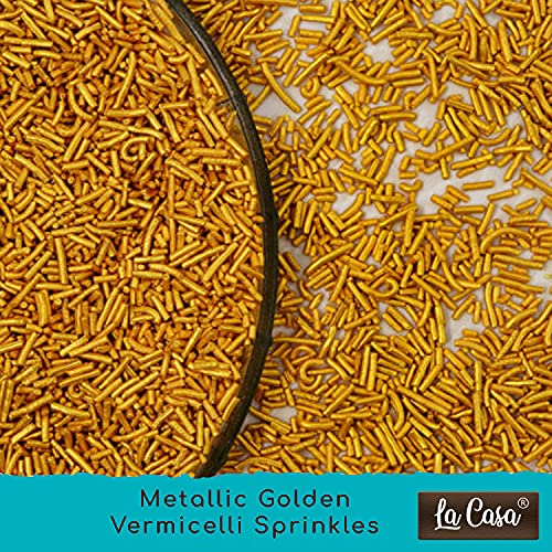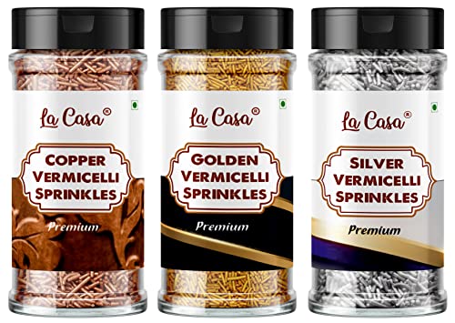 La Casa Metallic GOLDEN+SILVER+COPPER Vermicelli Sprinkles | Combo Pack of 3 | 100gx3 |