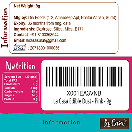 La Casa Premium Edible Petal Dust - PINK | Pearl Dust Ideal for Cake Icing Decoration & Garnishing | 9g |