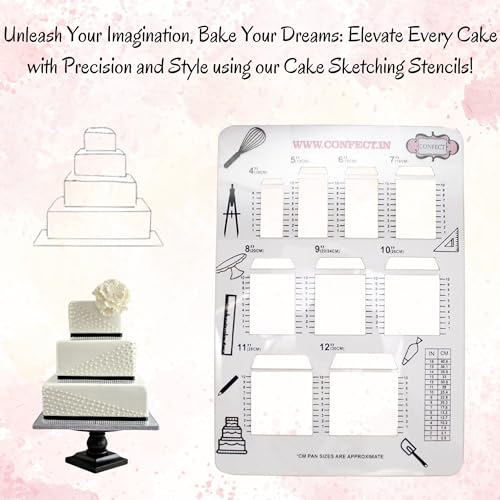 • This stencil will help you to sketch tiered cakes from 4" up to 12" allowing you to adjust the height and stack them on top of each other.